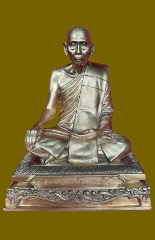 พระบูชาพิมพ์รูปเหมือน หลวงพ่อเงิน วัดดอนยายหอม จ.นครปฐม พ.ศ.2529 หน้าตัก 9 นิ้ว เนื้อโลหะรมมันปูผิวแห้งหิ้ง !! |