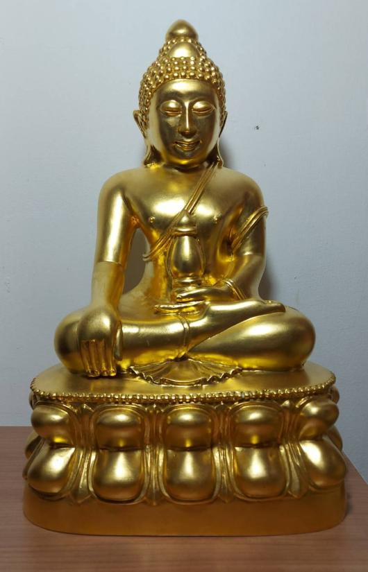 พระบูชาพุทธศิลป์ปางรำพึง พระกรุณามหาคุณมหามุณี สูงรวมฐาน 20. 7 นิ้ว เนื้อโลหะขัดเงาผิวหิ้ง !! |