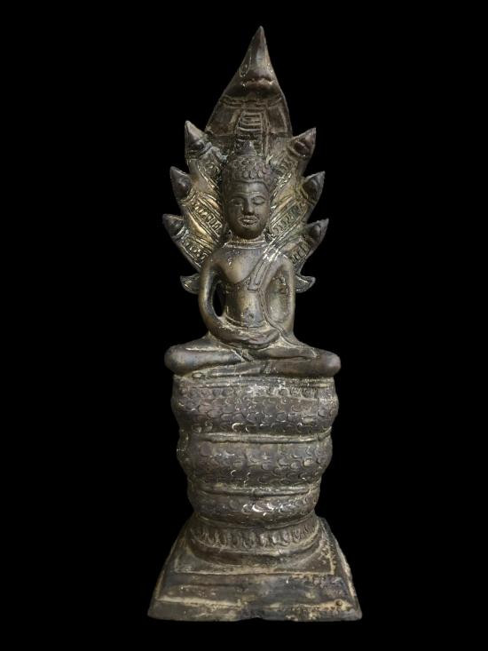 พระพุทธรูปสำริดแก่เงินปางมารวิไชย ฝาง สมัยเชียงแสนแบบสิงห์๓ (ลงกรุ) อายุราว ศตวรรษที่ 21-23 อายุราว 300-400 ปี ขัดผิวโบราณ (ผิวขัดเก่า) ผิวหิ้งๆเดิมๆ ไม่มีอุดซ่อม -ขนาดหน้าตัก 3 นิ้ว ฐานล่างกว้าง 3. |