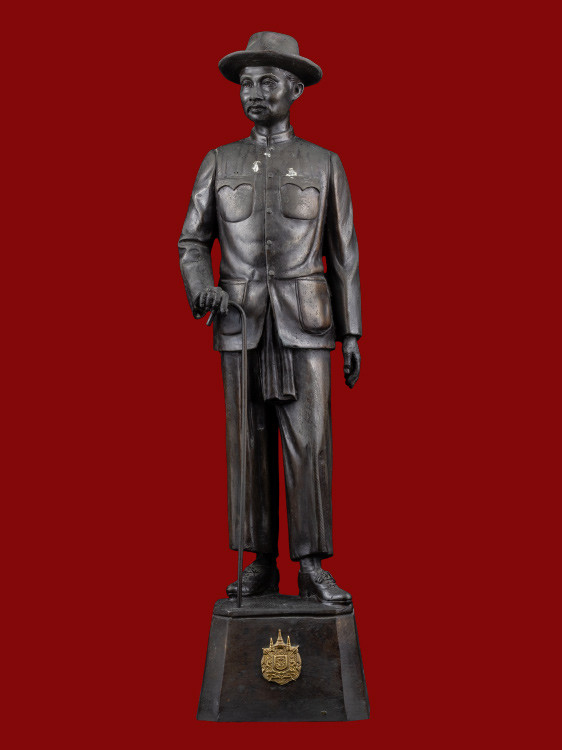 พระบรมรูปรัชกาลที่ 5 วัดหัวลำโพง กรุงเทพฯ พ.ศ.2537 เนื้อโลหะผสมรมดำปิดทองบางส่วน ตอกโค๊ต ตอกเลข องค์พระฯขนาดไซ้ส์ใหญ่มีน้ำหนักมากๆ !! |