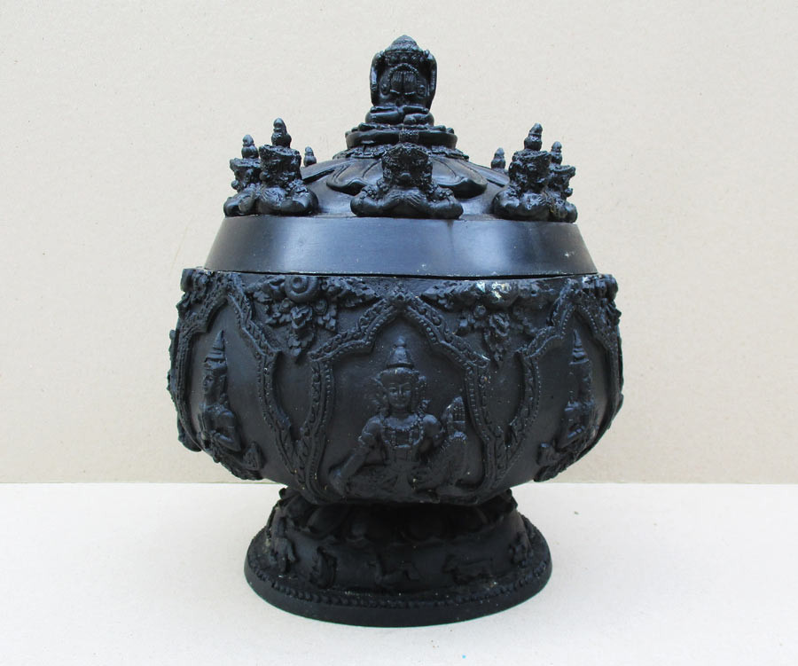 พระบูชาฐาน ภปร. พระกฐินต้น วัดเทวสังฆาราม จ.กาญจนบุรี พ.ศ.25 06 เนื้อโลหะรมดำผิวแห้งหิ้ง หน้าตัก 5 นิ้ว ตอกโค๊ต หัวช้งมีม งกุฎ หล่อดินไทย !! |