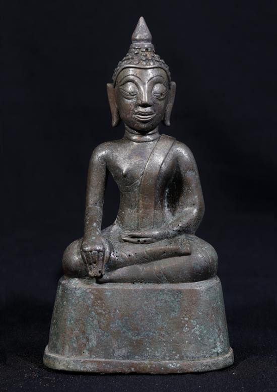 พระพุทธรูปสำริดปางมารวิไชย สมัยเชียงแสนแบบสิงห์๓ สะกุลช่างเมืองไชยปราการ (ลงกรุ) อายุราว ศตวรรษที่ 21-23 อายุราว 300-400 ปี |