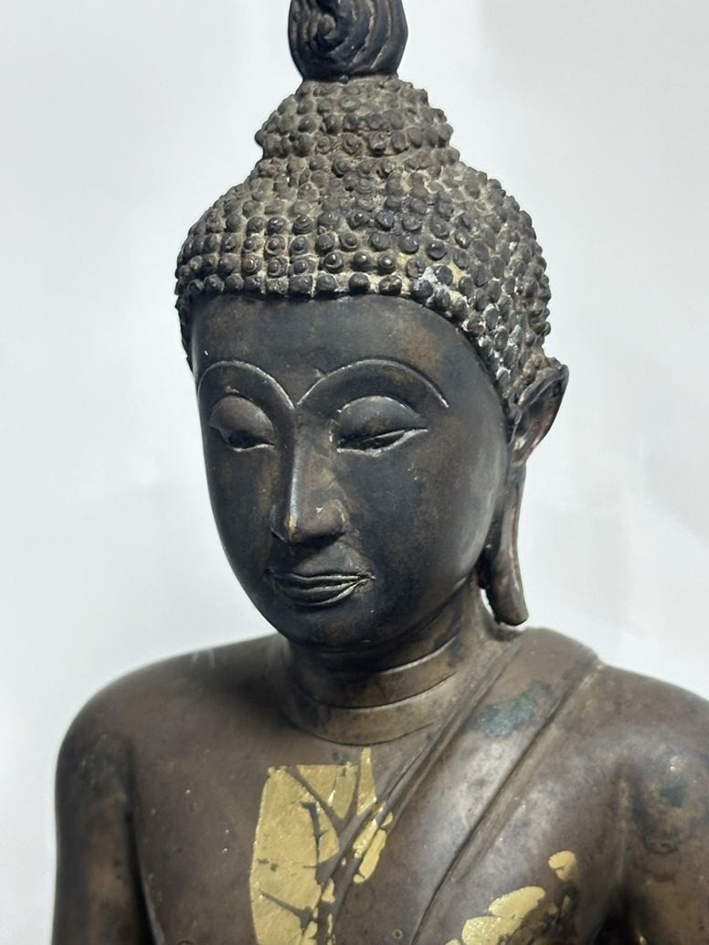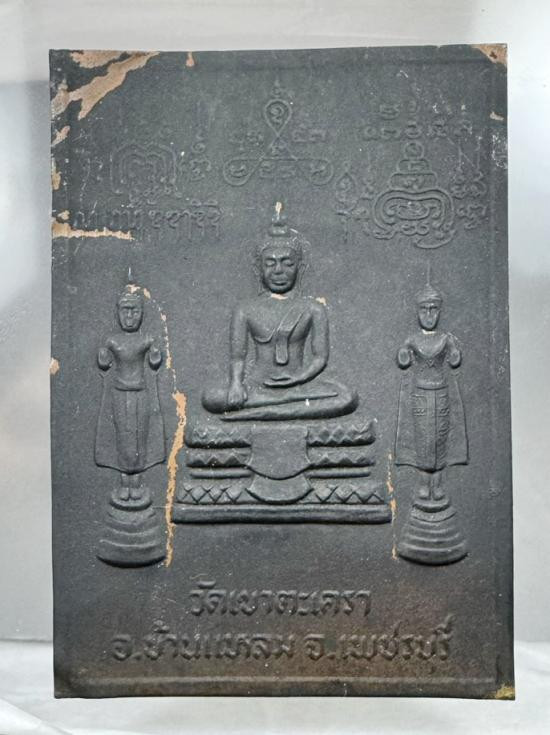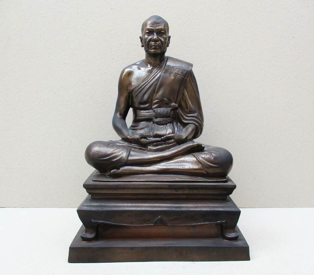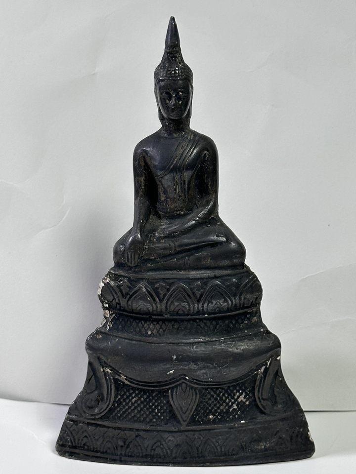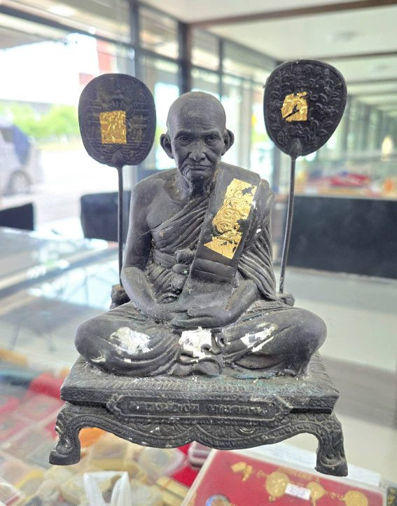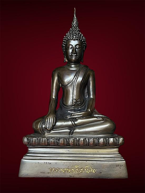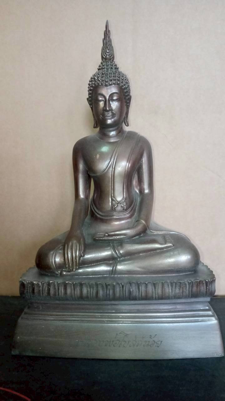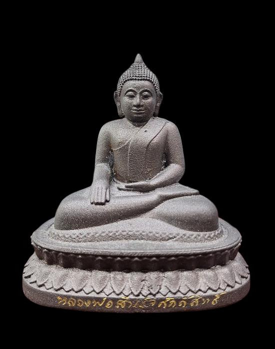 หลวงพ่อผาเงา วัดพระธาตุผาเงา จ.เชียงราย พ.ศ.2550 หน้าตัก 9 นิ้ว เนื้อโลหะรมดำมันปูผิวหิ้ง พุทธศิลป์งดงาม !! |