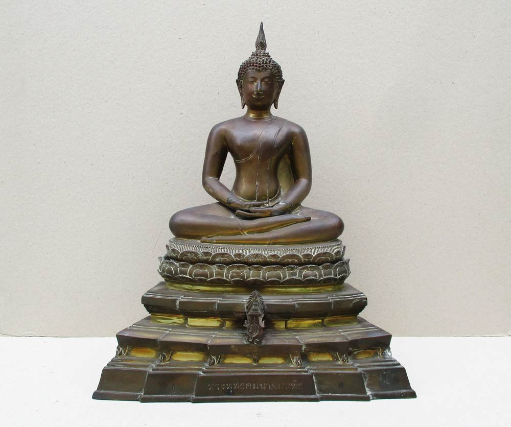 พระพุทธคมนาคมบพิธ ฐานภปร. ( พระพุทธสิหิงค์จำลอง ) จัดสร้างโดยกระทรวงคมนาคมพ.ศ.2539 หน้าตัก 9 นิ้ว ตอกโค๊ต ตอกเลข เนื้อโลหะขัดเงาผิวหิ้ง วรรณะออกแดง !! |