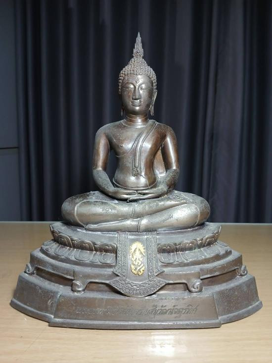 พระบูชา พระพุทธสุรินทรภักดี จ.สุรินทร์ พ.ศ.2541 หน้าตัก 4.7 นิ้ว ตอกโค๊ต และ มีหลายเลข เนื้อโลหะรมมันปูผิวแห้งหิ้ง !! |