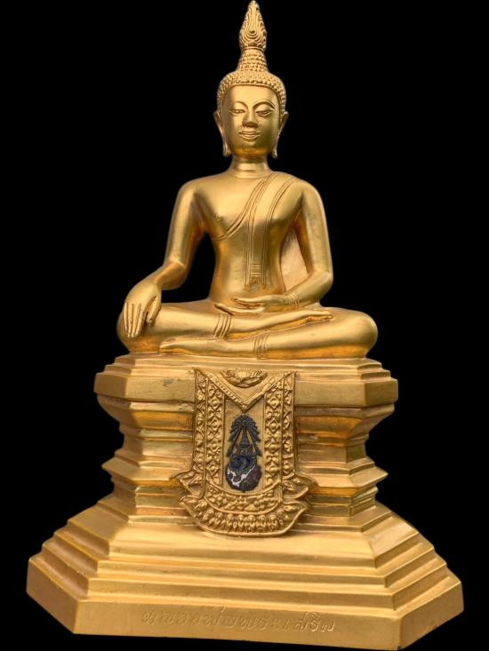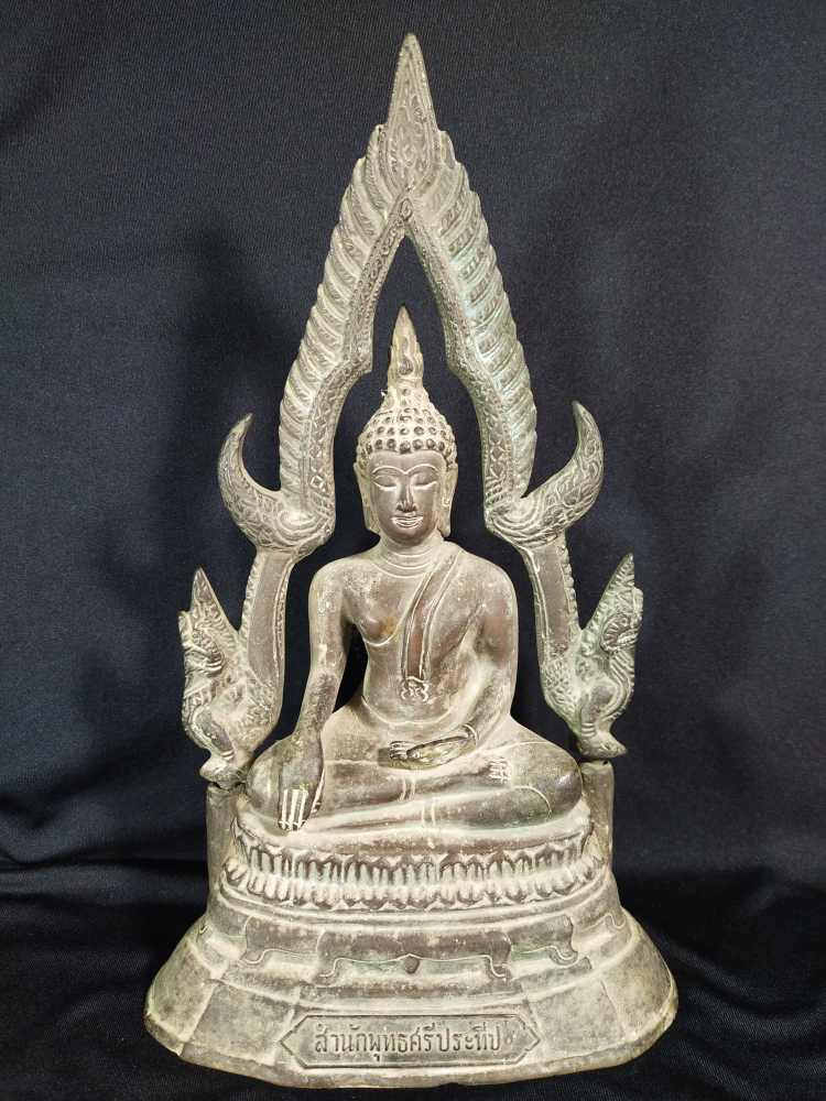 พระบูชา พระพุทธรังสี สมาคมช่างสำรวจ ปี 2526 เนื้อทองผสมรมดำ สูง 16.9 นิ้ว |