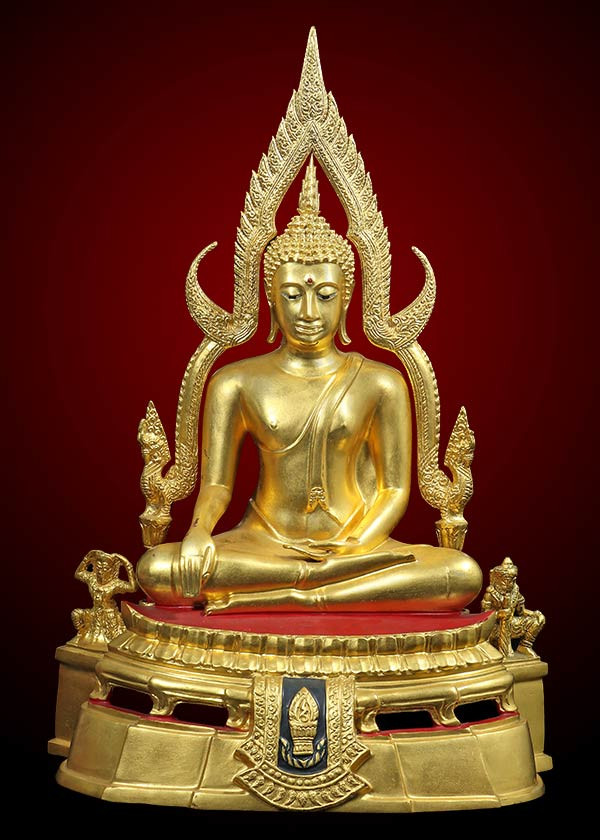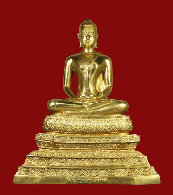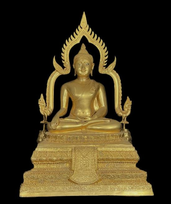 พระพุทธชินราช ฐานพานพุ่มหลังอกเลา หน้าตัก 9 นิ้ว เนื้อทองเหลืองปิดทอง หมายเลข 9 |