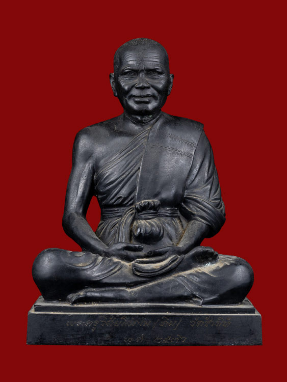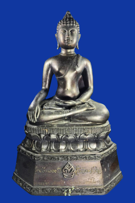 หลวงพ่อผาเงา วัดพระธาตุผาเงา จ.เชียงราย พ.ศ.2550 หน้าตัก 9 นิ้ว เนื้อโลหะรมดำมันปูผิวหิ้ง พุทธศิลป์งดงาม !! |