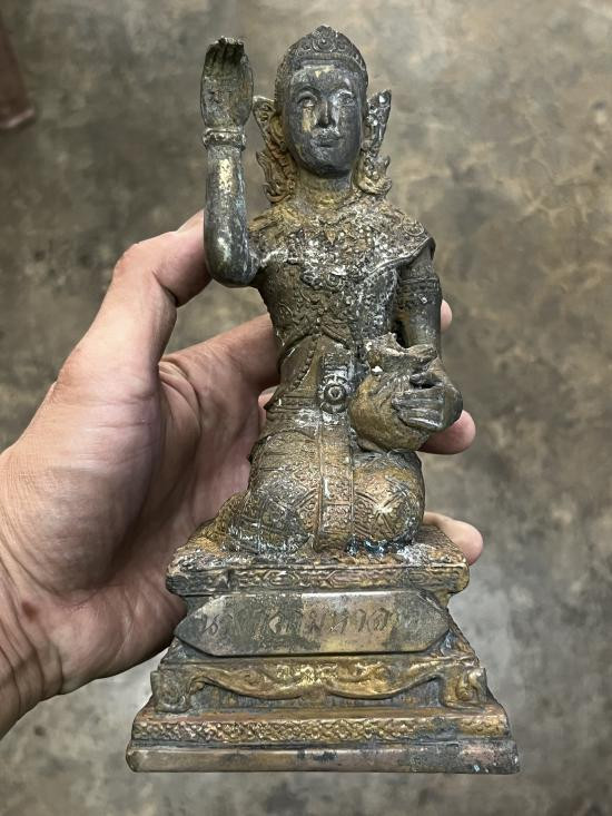 พระบูชานางกวักมหาลาภ วัดไผ่ล้อม นครปฐม หน้าตัก3นิ้ว ยาว5นิ้ว สูง8นิ้ว เนื้อโลหะ |