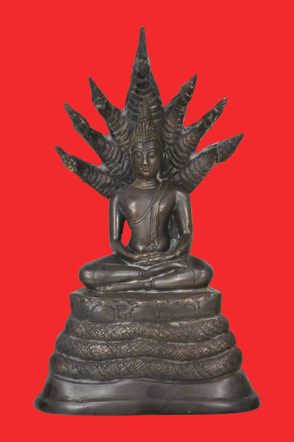 พระพุทธรูป ทรงเครื่องจักรพรรดิ์ เนื้อโลหะรมมันปู ปางสมาธิ |