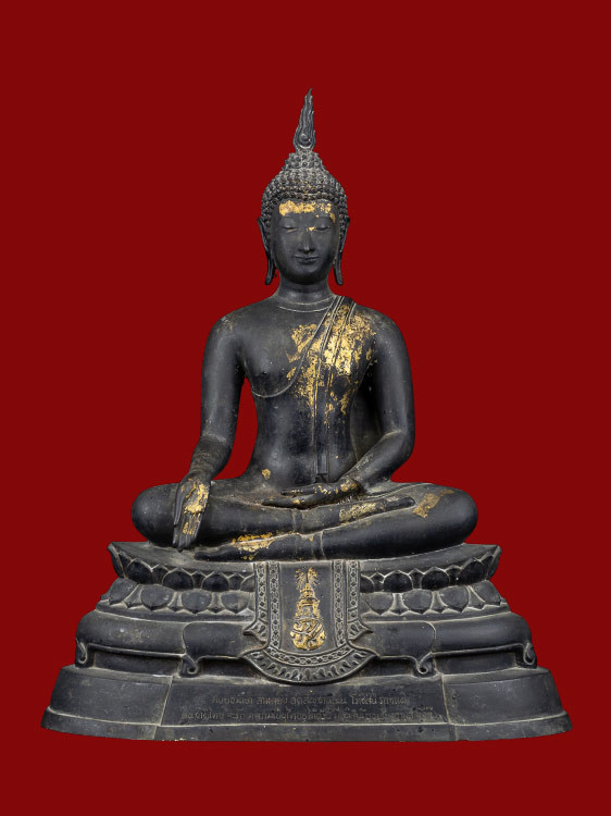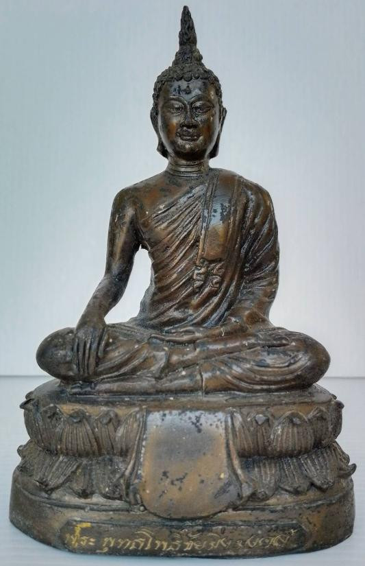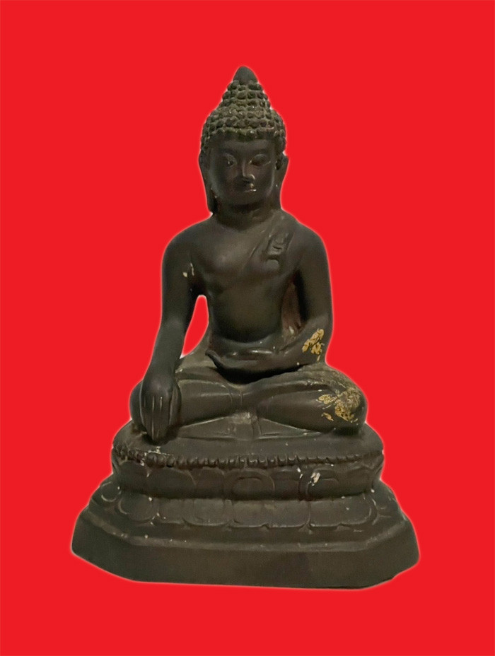 พระพุทธประทานพร หลวงพ่อแพ วัดพิกุลทอง จ.สิงห์บุรี พ.ศ.2512 หน้าตัก 9 นิ้ว เนื้อโลหะรมดำมันปูผิวหิ้ง หล่อดินไทยสีดำ พร้อมบัตรพระแท้การันตีพระ !! |