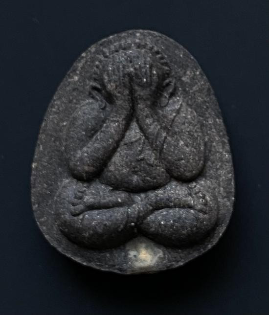พระปิดตายันต์ดวงเล็ก ปี2523 สมเด็จพระญาณสังวร (เจริญ) วัดบวรนิเวศ_(เนื้อผงใบลานดำปลดหนี้)_มีเส้นเกศา_พิมพ์หนา_