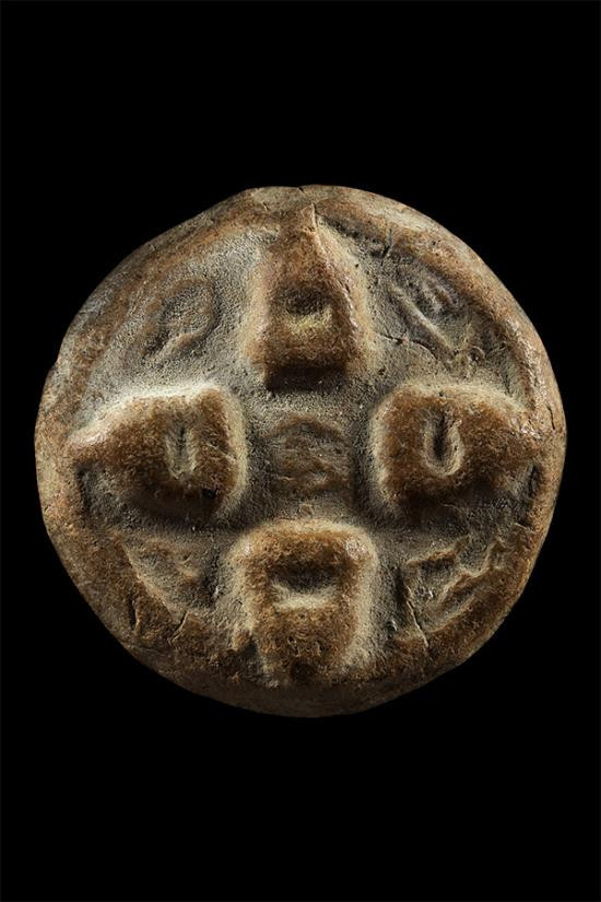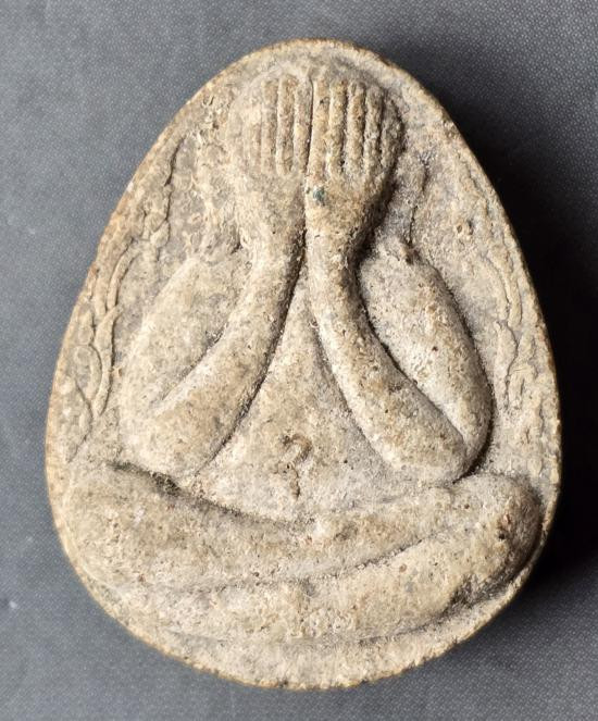 พระปิตาหลวงปู่ใจ วัดเสด็จ พิมพ์หลังยันต์เฑาะว์ เนื้อเมฆพัด ปี 2472 จังหวัดสมุุุุทรสงคราม พร้อมบัตร