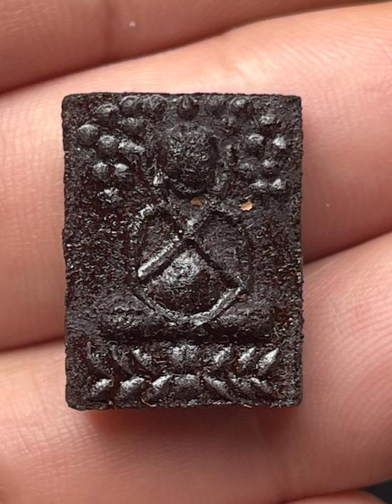 ปิดตาผงว่าน (เนื้อควายธนู) ลป.จันทร์ วัดทุ่งเฟื้อ นครศรีฯ พิมพ์ใหญ่ ๒.๕x๓.๕ซม. หลัง จ. สวยชัด
