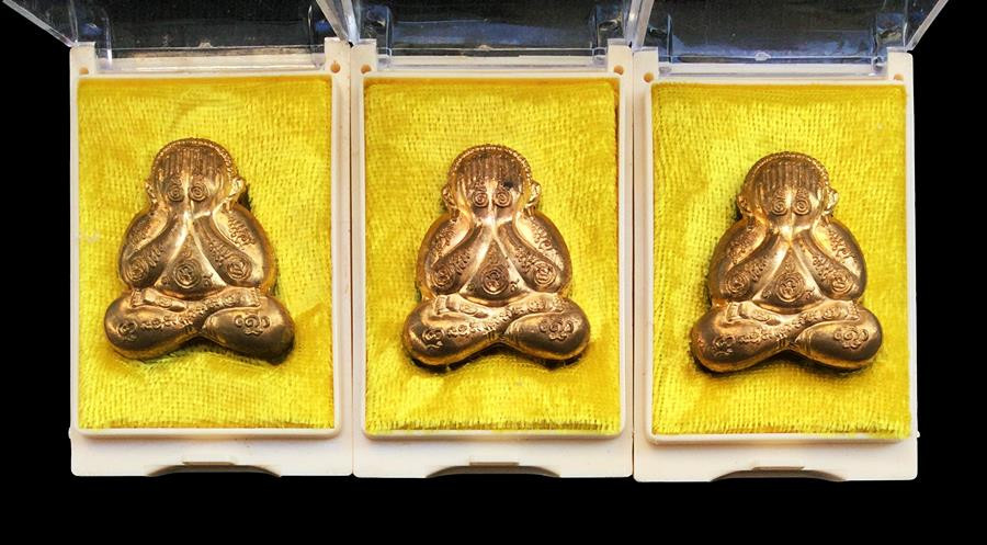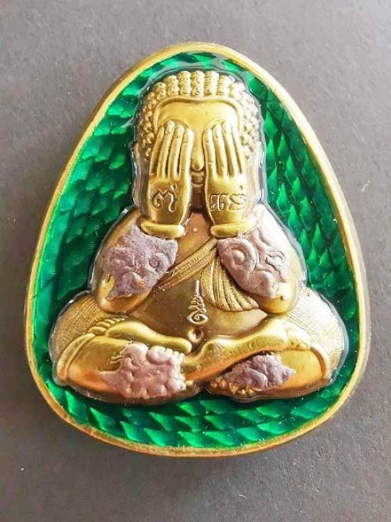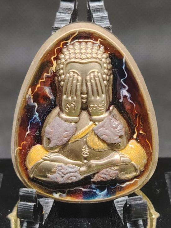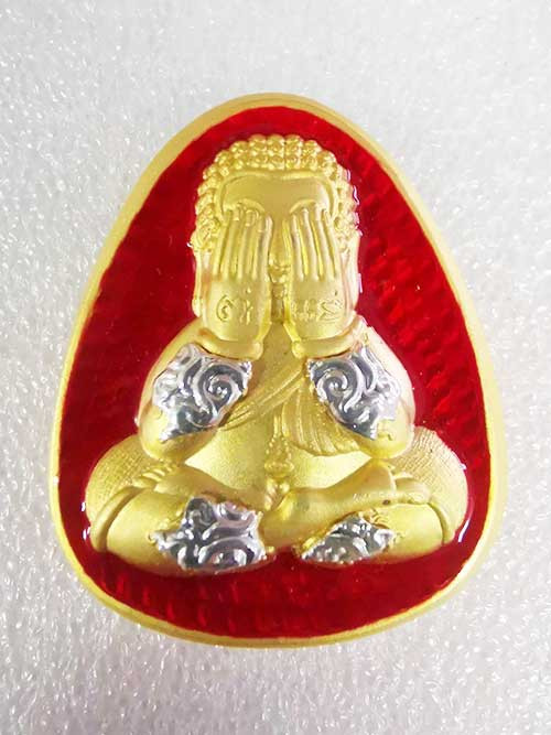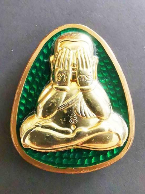 พระปิดตาลงทองหลังเป็นรูปหลวงพ่อด้านหลัง