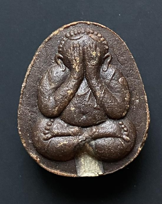 พระปิดตาโสฬสมหาพรหม หลวงปู่ทิม วัดละหารไร่ พิมพ์แข้งคู่ เนื้อผงคลุกรัก ปี2503 พิมพ์จิ๋ว พร้อมบัตรจีพระ