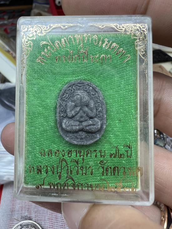 พระปิดตาพุทธเมตตา ทรงไก่ปีระกา เนื้อผงพุทธคุณ หลวงปู่วิเวียร วัดดวงแข ปี ๒๕๓๖ พร้อมกล่อง |