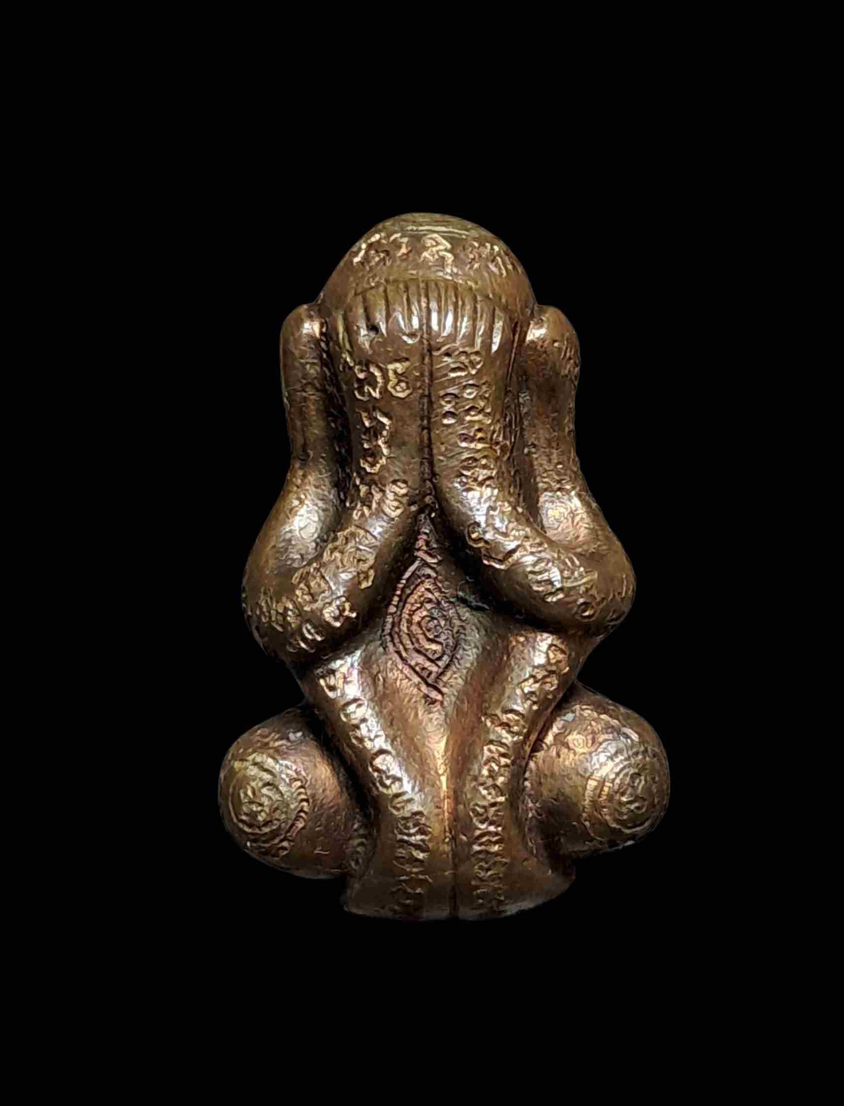 พระปิดตามหามงคล หลวงปู่โทน วัดเขาน้อยคีรีวัน ชลบุรี วาระครบ 7 รอบ ปี 2549 ลงรกแดงปิดทอง โค๊ดชัดพร้อมกล่องเดิมๆ |