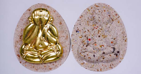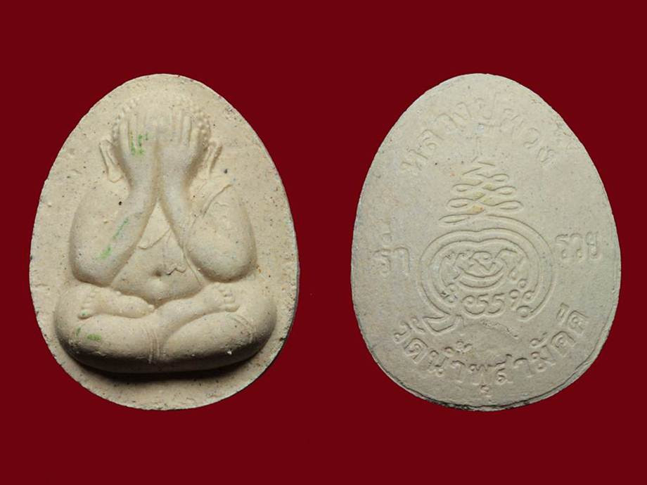 พระปิดตาจัมโบ้ร่ำรวย หลวงปู่พวง วัดน้ำพุสามัคคี จ.เพชรบูรณ์ เนื้อผงปัถมังผสมว่านเพชรหลีกเพชรกลับ สีขาวอมเหลือง ที่ระลึกงานบุญกฐินประจำปี 2555 |