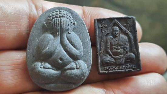 เคาะเดียว 2 องค์...พระปิดตา หลวงพ่อน้อย วัดศรีษะทอง เนื้อชิน นครปฐม ปี 2478 |