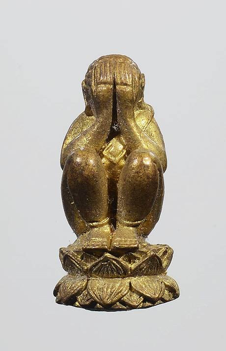 พระปิดตา 7 รอบ 84 พรรษา เนื้อโลหะชุบสามกษัตริย์ สมเด็จพระาณสังวร สมเด็จพระสังฆราช วัดบวรนิเวศวิหาร พร้อมเลี่ยมยกซุ้มสิงห์ชุบทอง+กล่องเดิม |