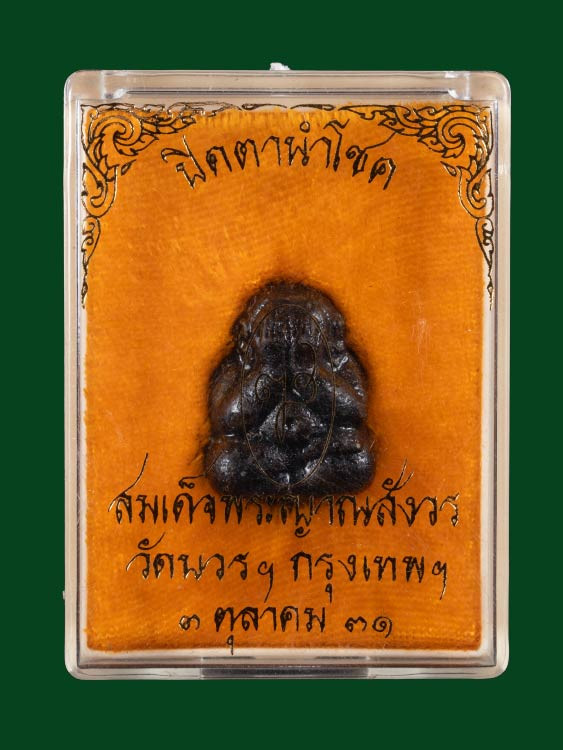 พระปิดตาจัมโบ้ ญสส พ.ศ.2535 เนื้อผงใบลานปิดแผ่นทองคำแท้ มาพร้อมกล่องเดิม |