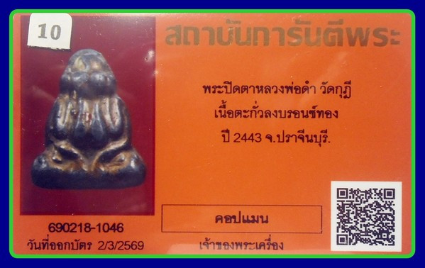 พระปิดตาหลวงพ่อปาน วัดบางกะสอบ พิมพ์นั่งยอง พร้อมบัตรสมาคม |