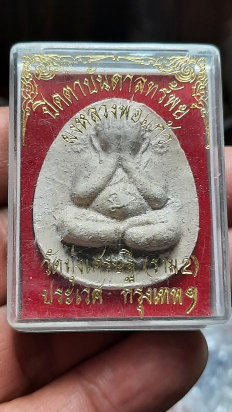 พระปิดตาท่านเจ้าคุณศรี วัดอ่างศิลา พิมพ์นักกล้ามเล็ก เนื้อผง ปี 2507 ชลบุรีเลี่ยมทองพร้อมบัตร สวยเดิมๆ |