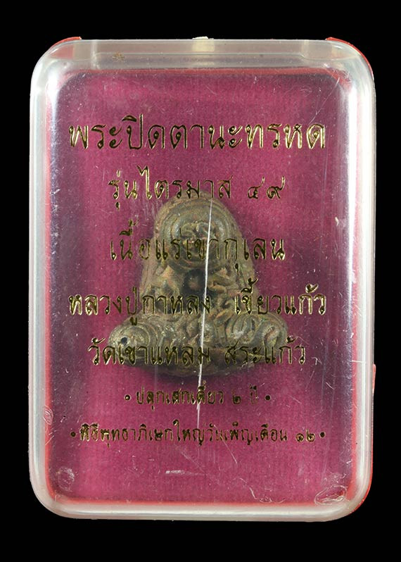พระปิดตาแก้วสารพัดนึก หลวงพ่อแก้ว วัดช่องลม ปี 2524 สภาพสวย กล่องเดิม พร้อมบัตร |