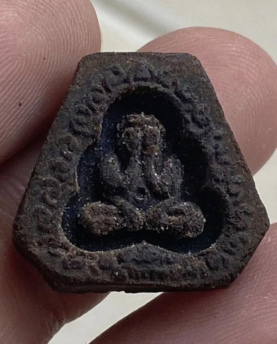 พระปิดตาลงรักบางๆ ใต้ฐานฝังตะกรุด ไม่ยันสำนัก |