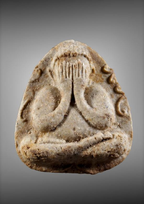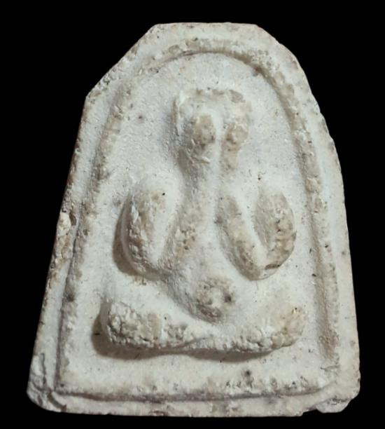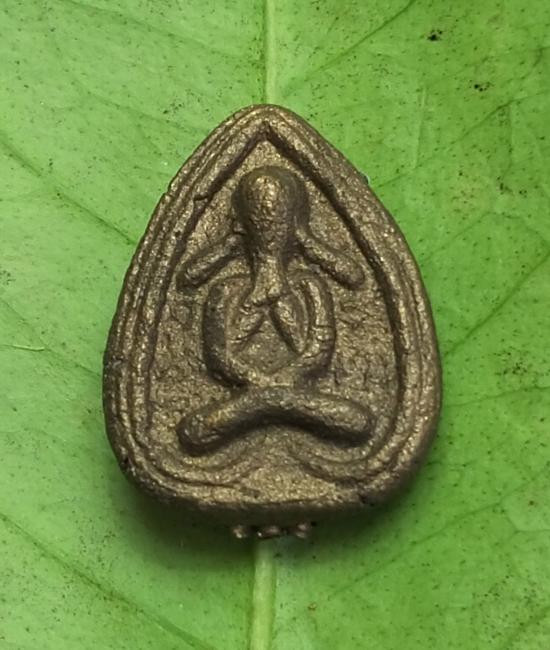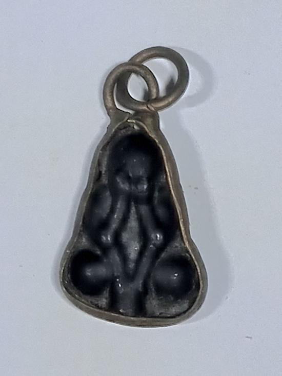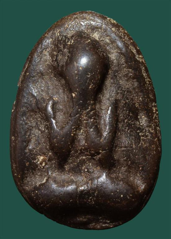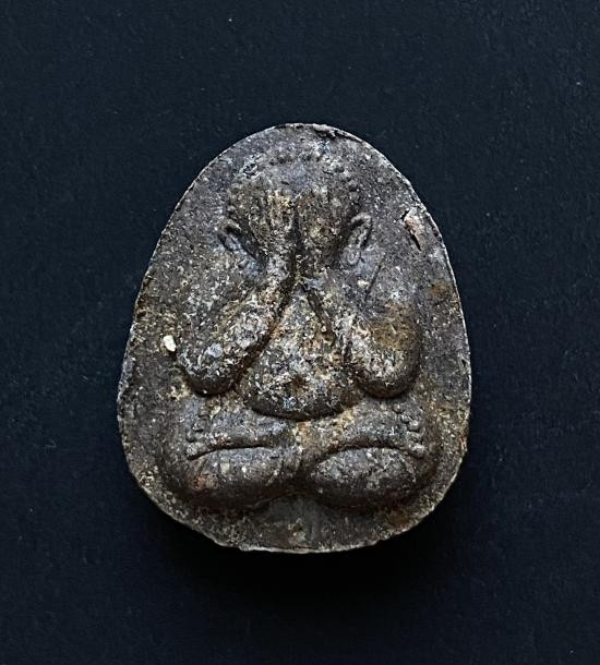 พระปิดตากรุวัดนางชี เนื้อชินตะกั่ว ด้านด้านหลังมีจาน |