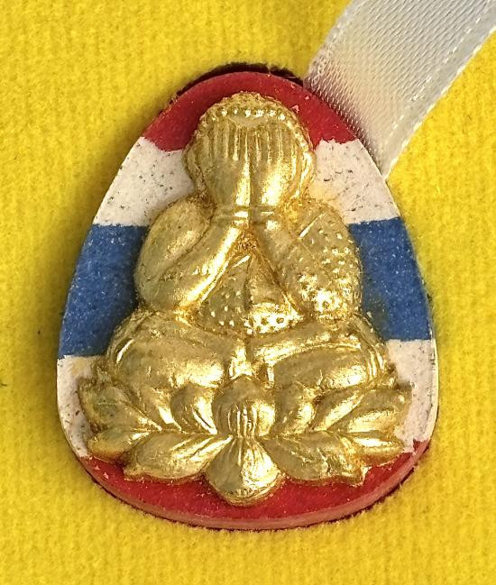 พระปิดตาเงินล้าน หลวงปู่จื่อ ชุดนำฤกษ์ เนื้อลายธงชาติ ปิดทององค์พระ ฝังแร่ควอตซ์ หลังพระปิดตาทองเหลือง |