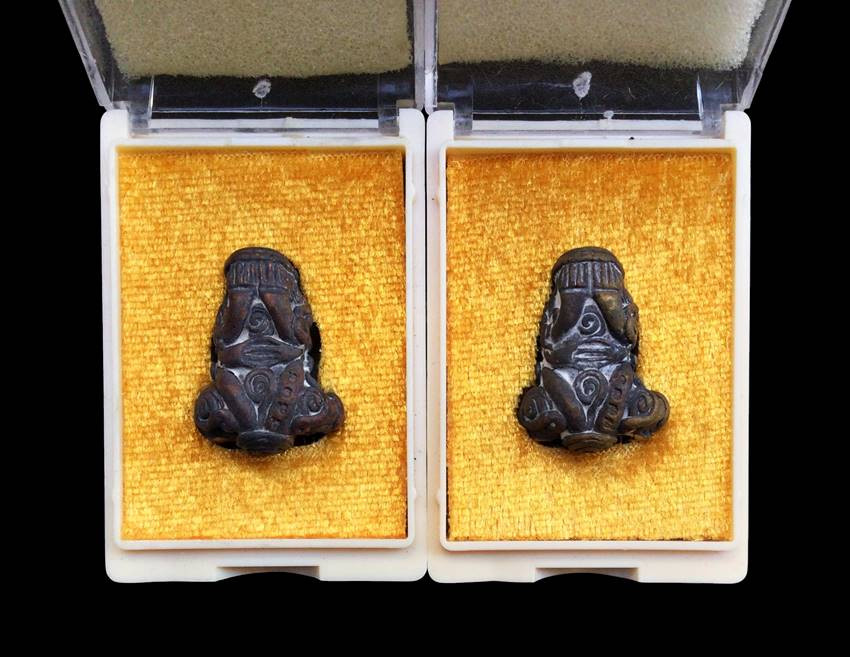 พระปิดตาหลวงปู่เฮี้ยง วัดป่า พิมพ์ซุ้มเถาวัลย์ เนื้อผงคลุกรัก ปี2510 จ.ชลบุรี พร้อมบัตรรับรองครับ |