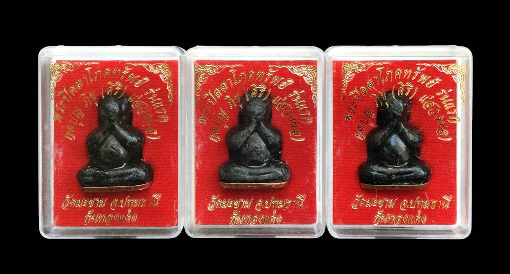 วัดใจ 100 พระปิดตาจัมโบ้รุ่นแรก หลวงพ่อทอง วัดบ้านไร่ จ.นครราชสีมา 2561 เทาผงธูป กล่องเดิม |