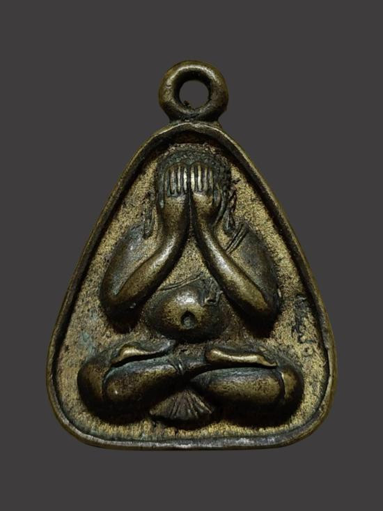 พระปิดตาพิมพ์สามเหลี่ยม เนื้อตะกั่ว หลวงพ่อน้อย วัดธรรมศาลา จ.นครปฐม ปี 2512 |
