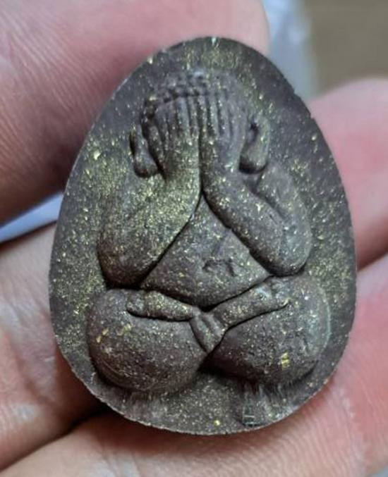 A2560.ของดี พระปิดตาปลดหนี้ วัดนาเขื่อน ชลบุรี เนื้อผงจุ่มลักปิดทองเดิม ฝังตะกรุด 1 ดอก เคาะเดียวเเดง |