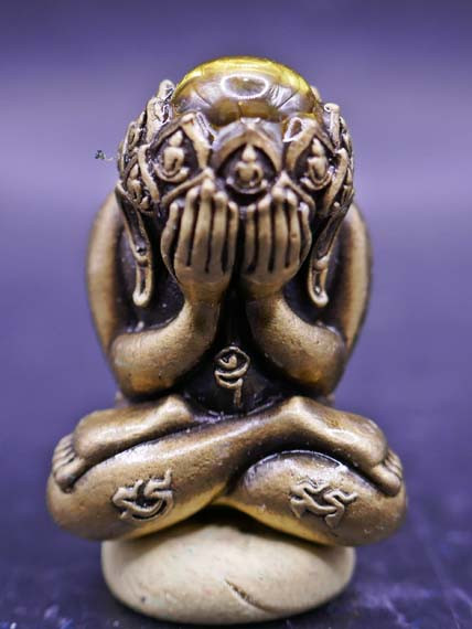 พระปิดตา พิมพ์ยันต์ยุ่ง หลวงปู่ตี๋ วัดหลวงราชาวาส จ.อุทัยธานี. ปี ๒๕๓๙ เนื้อทองเหลือง |