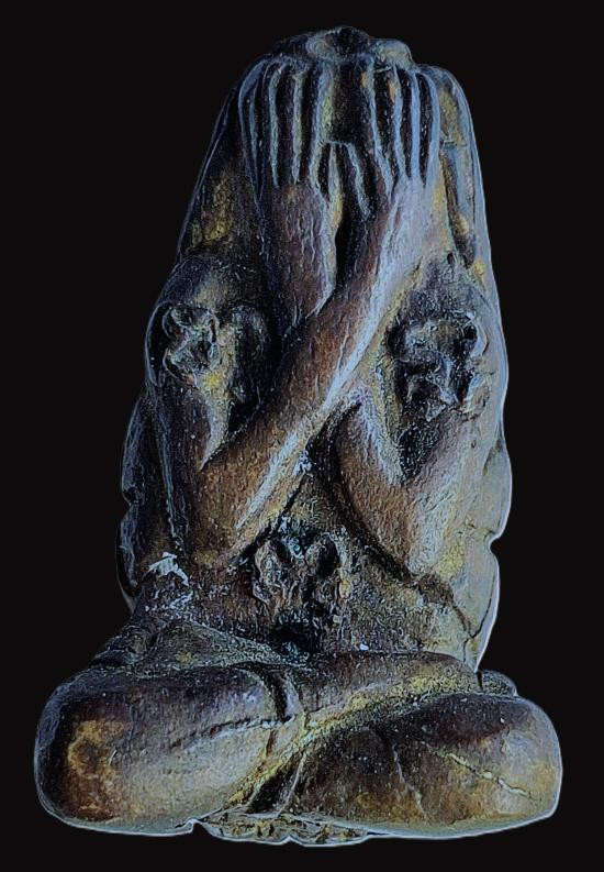 พระปิดตามือไขว้มหาอุตต์ วัดปากสระ จ.พัทลุง เนื้อชนวนโลหะเก่า |