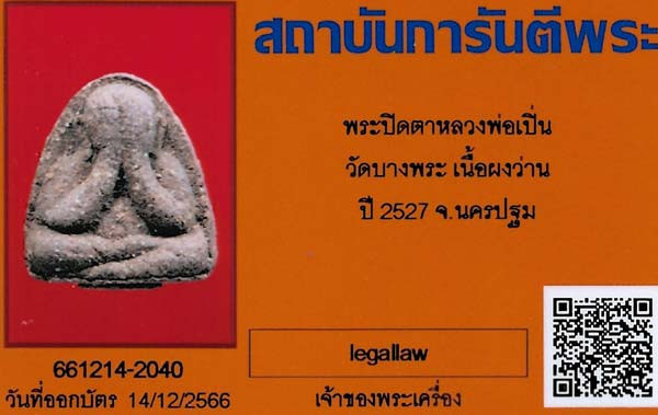 วัดใจ_พระปิดตาหลวงพ่อเกิด วัดบางสะพาน เนื้อเมฆพัตร ปี 2484 จ.นครนายก มาพร้อมบัตรรับรองพระแท้ |