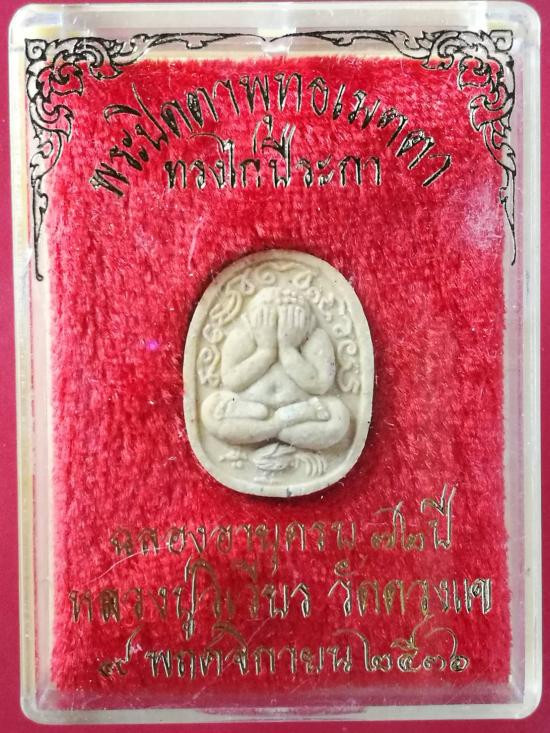 พระปิดตาพุทธเมตตา ทรงไก่ปีระกา เนื้อใบลาน หลวงปู่วิเวียร วัดดวงแข ปี ๒๕๓๖ พร้อมกล่อง |