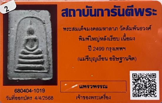 พระมงคลมหาลาภพระสมเด็จพิมพ์ใหญ่เนื้อผงปี2499.พระสภาพสวยมาเดิมๆดีมากคะพร้อมบัตรตรวจสอบเรียบร้อยดีแล้วคะ