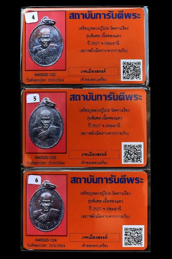 ชุด 3 องค์...เหรียญหลวงปู่ไปล่ วัดดาวเรือง รุ่นพิเศษ เนื้อทองแดง ปี 2527 จ.ปทุมธานี + บัตรพระแท้การันตีพระ สภาพพระตามรูปที่ลงทุกประการ