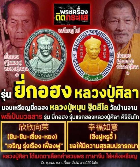 วัดใจ เหรียญสายเสี่ยงโชค ไม่ควรพลาด พ่อปู่ "ยี่กอฮง" รุ่น "โคตรเศรษฐี" เนื้อทองแดง ซีลเดิม หลวงปู่มหาศิลา สิริจันโท(หลวงปู่ศิลา)จ.กาฬสินธุ์ ผสมมวลสารหลวงปู่หมุน |