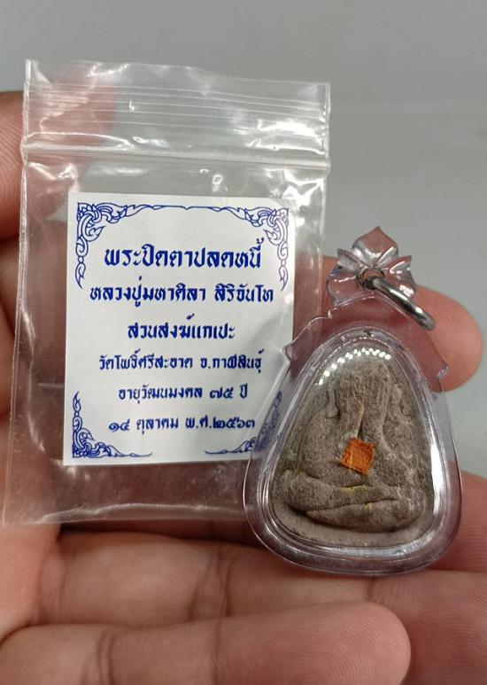 1 ใน 800 องค์ แช่น้ำมนต์ มีจารพร้อมติดจีวร พระปิดตาปลดหนี้รุ่นแรก หลวงปู่มหาศิลา สิริจันโท สวนสงฆ์แกเปะ วัดศรีสะอาด จ.กาฬสินธุ์ ปี 2563 |