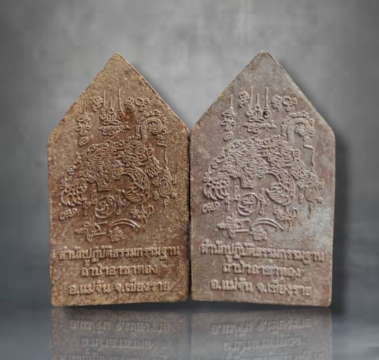 2 องค์ ++ ขุนแผนเนื้อว่านผงปัดทอง ครูบาเหนือชัย วัดถ้ำป่าอาชาทอง หลังยันต์เสือ |