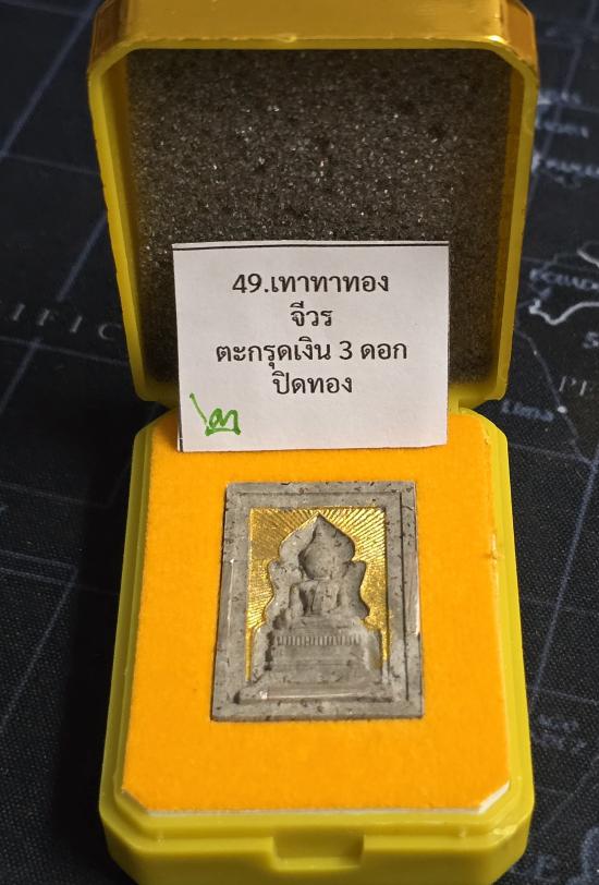 เนื้อเทาผงธูป ทาทอง จีวร ตระกรุดเงิน 3 ดอก ปิดทองหลัง พระสวยมาก หายากแล้วครับ
