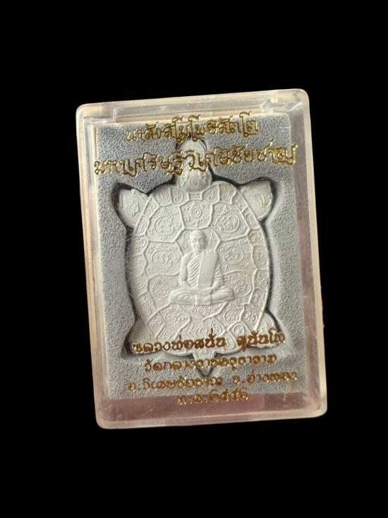 หลวงพ่อสนั่น เป็นพระเกจิที่มีชื่อเสียงเรื่องพุทธาคมและเมตตาบารมีสูง รุ่นปี 2556 จัดสร้างในพิธีมงคลใหญ่ เนื้อหาพุทธคุณเข้มขลัง เหมาะแก่การบูชาเพื่อเสริมดวงหรือเก็บสะสมระยะยาว (เคาะเดียวแดง) |