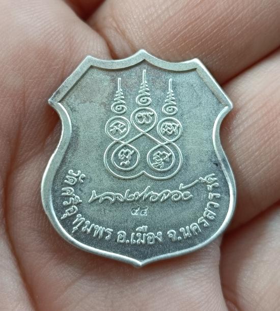 เหรียญอาร์มมหามงคล หลังลายเซนต์ หลวงปู่จ้อย จันทสุวัณโณ ( เนื้อเงินลงยา สีน้ำเงิน ) ปลุกเสกต้นปี ๔๙ |