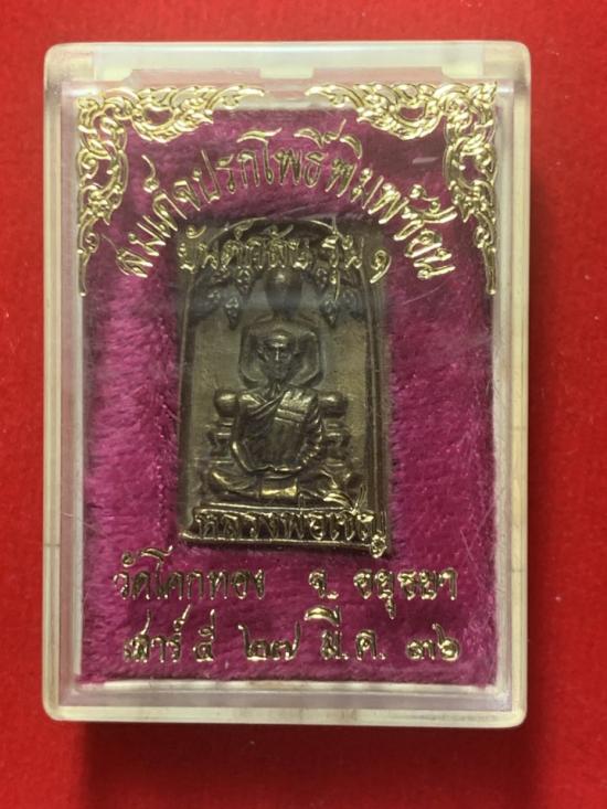 หลวงพ่อเชิญ วัดโคกทอง อยุธยา พระสมเด็จปรกโพธิ์ พิมพ์ซ้อน หลังยันต์เกราะเพชร เนื้อทองเหลือง ปี 2536 |