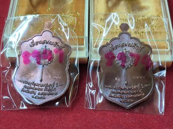 @@..เหรียญเสมา รุ่นแรก เลื่อนสมณศักดิ์ หลวงพ่อนวณ วัดแก้วเจริญ จ.สมุทรสงคราม ปี 67 เนื้อทองแดง เบอร์ 8947+8974 กล่องเดิม..@@ |